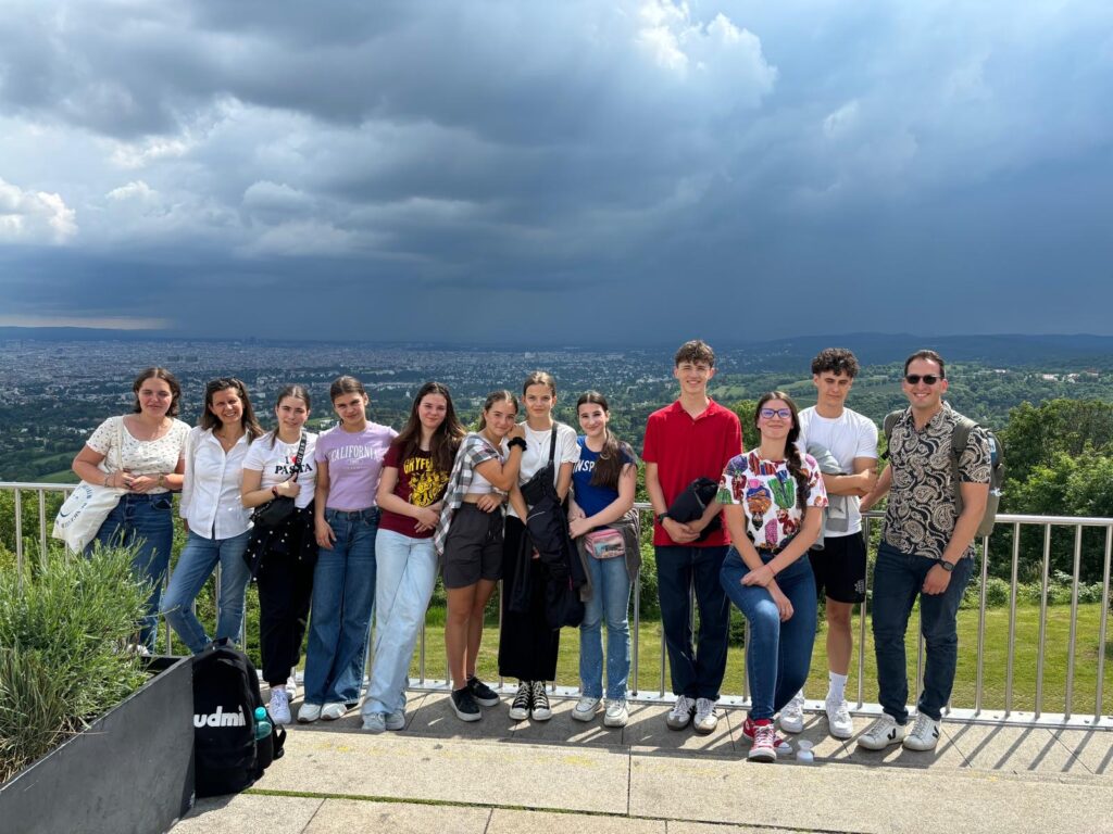Heuer konnten wir das Netz unserer Partnerschulen um einen weiteren Standort erweitern. In der Zeit vom 20. – 25.5.2024 reiste eine Gruppe von 9 Schüler:innen und zwei Begleitlehrerinnen aus dem rumänischen Timisoara nach Wien, um im Rahmen eines Erasmus+ Projektes den Schulalltag einer österreichischen Schule kennenzulernen. Vier Tage lang besuchten die Schüler:innen gemeinsam mit ihren Buddys aus der 4C den Regelunterricht und konnten dadurch authentisch Unterschiede und Gemeinsamkeiten zwischen ihrer Schule – der Scoala Babel – und dem Piaristengymnasium ausmachen. Neben dem Schulalltag stand natürlich auch die Erkundung unserer Hauptstadt auf der Agenda, die die rumänischen Schüler:innen ins Time Travel, das Technische Museum und gemeinsam mit uns Piarist:innen in den Prater führten. Den Abschluss der Woche bildete eine Wanderung durch die Wiener Weinberge und ein gemütliches Beisamensein bei Schnitzel und Kaiserschmarren.