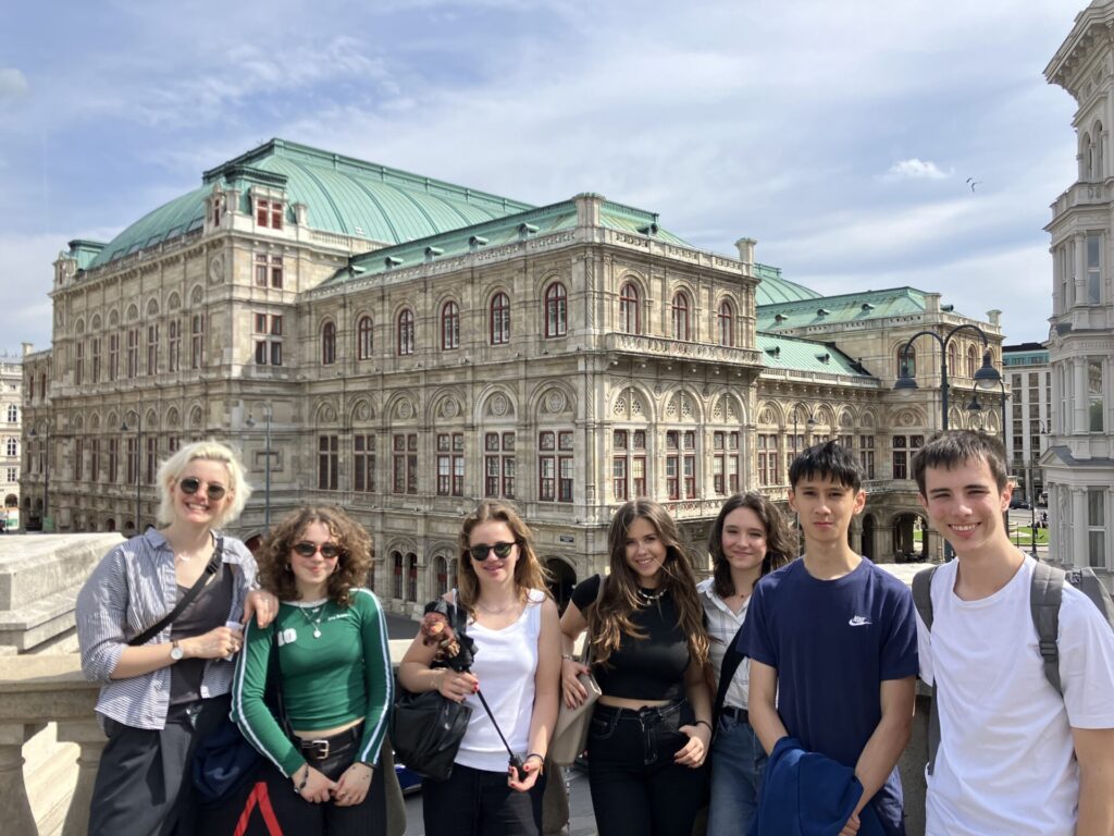 Aufgrund unseres Französischschwerpunktes LabelFrancEducation wird seit mittlerweile sechs Jahren die Unverbindliche Übung „Histoire en français“ – Geschichte auf Französisch – an unserem Schulstandort angeboten. Die ideale Gelegenheit für interessierte Schüler:innen sich in der Fremdsprache mit Inhalten auseinanderzusetzen, die auf ihre Interessen zugeschnitten sind und durch regelmäßige Exkursionen vertieft werden. So haben wir uns dieses Jahr während der zwei Wochenstunden beispielsweise mit der Herstellung und Geschichte des Parfums auseinandergesetzt, die Geschichte des Frauenwahlrechts in den Fokus gerückt oder auch eine visuelle Reise zu den Schlössern der Loire unternommen. Lehrausgänge komplementieren den Unterricht und finden in regelmäßigen Abständen unter dem Schuljahr statt. Zu Beginn dieses Schuljahres führte uns ein Lehrausgang in den Narrenturm, nachdem wir über die großen Pandemien der Geschichte gesprochen hatten, gefolgt von einem Kinobesuch des Films „Napoleon“ im Gartenbaukino. Im zweiten Semester erkundeten die Schüler:innen einen Teil der Sammlung des Technischen Museums auf einer französischen Schnitzeljagd und Anfang Mai wurden die Schüler:innen selbst als französischsprachige Fremdenführer:innen während eines Stadtspaziergangs durch das Wiener Stadtzentrum tätig, der mit einer Führung durch die Spanische Hofreitschule zu Ende ging.