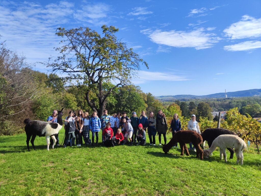 Wir, die Klasse 2A waren am 14.Oktober mit Lamas wandern. Wir sind mit dem Zug nach Kritzendorf gefahren. Als wir dort waren, hatte uns die Besitzerin sehr nett erklärt, wie wir mit ihren Lamas und Alpakas umgehen sollen. In den zwei Stunden, die wir hatten, sind wir mit den Lamas und Alpakas in die Weinberge gewandert. Unsere Mittagspause haben wir auf einer Wiese verbracht. Als wir zurück gefahren sind, waren wir alle sehr traurig, dass es zu Ende war. Gerne nochmal! 😊