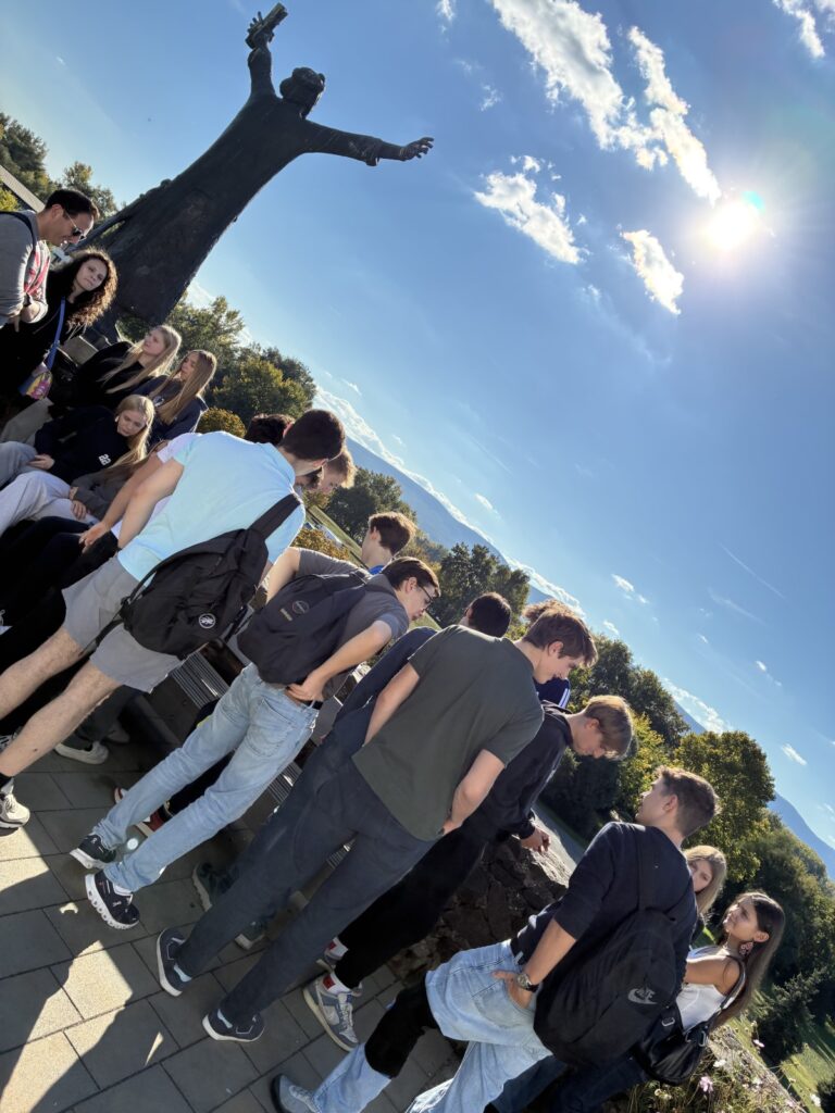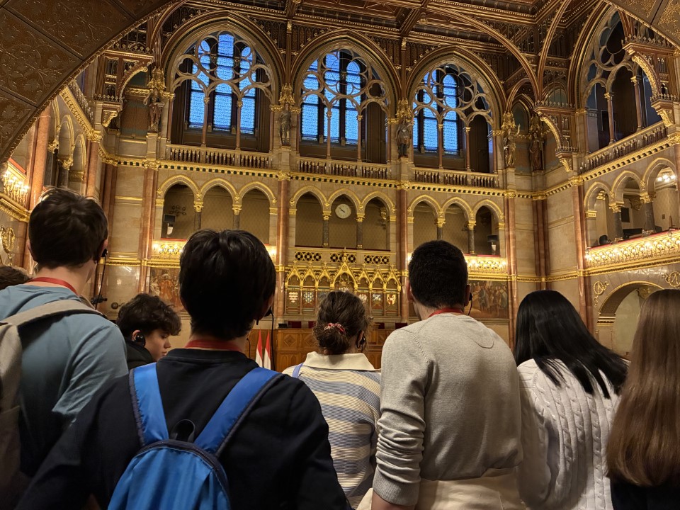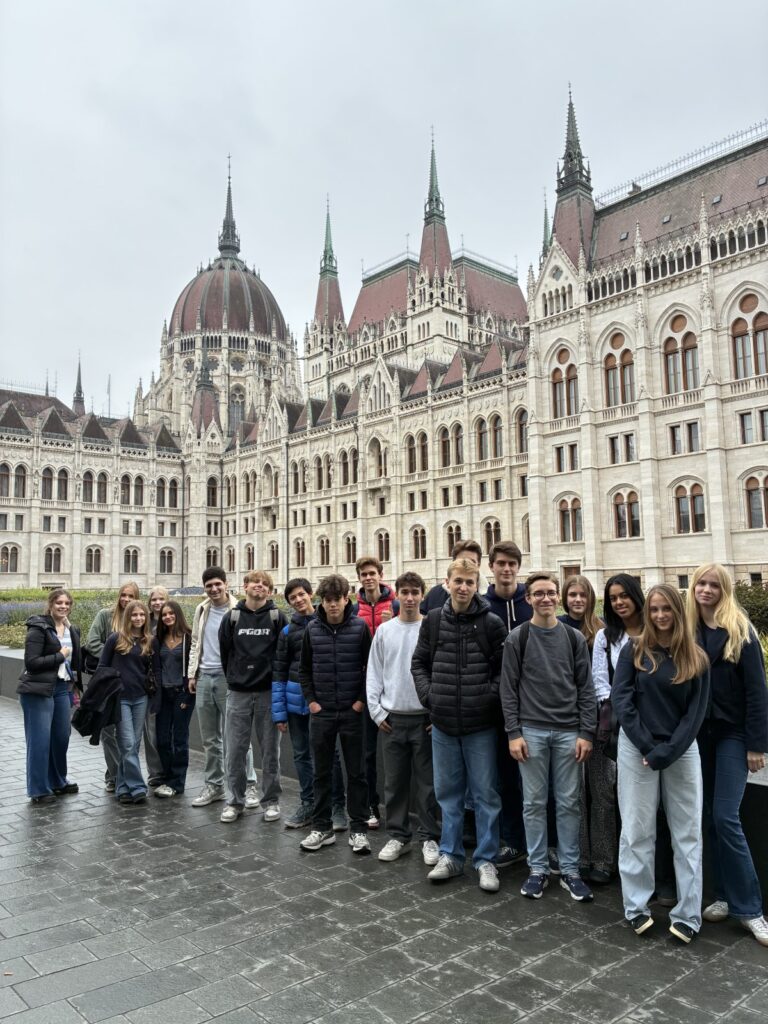 Am 8. Oktober sind wir, die 6C, mit dem Zug nach Vác für einen Austausch mit dem dortigen Piaristengymnasium gefahren. Frau Prof Bösch hat diese Reise organisiert und obwohl anfangs geplant war bei Gastfamilien zu schlafen, haben wir die 2 Nächte in einem netten Hotel verbracht, welches nicht weit von der Schule entfernt war. Am ersten Nachmittag haben uns die ungarischen Jugendliche bei einem Willkommensempfang mit traditionellem Tanz und Musik erwartet. Schließlich begaben wir uns auf eine Rätselralley durch die Stadt in gemischten Gruppen mit UngarnInnen und ÖsterreicherInnen. Den Abend haben wir noch mit gutem Essen in der Schule und Tänzen gemeinsam mit den ungarischen Schülern ausklingen lassen. An unserem zweiten Tag in Ungarn sind wir schon früh am Morgen nach Budapest gefahren. Wir haben dort den Tag verbracht, sahen uns das berühmte Parlament an und hatten eine sehr interessante Führung im Haus des Terrors, wo wir über die Geschichte Ungarns erfahren haben. Zusätzlich hatten wir unter der professionellen Leitung von Professor Macek einen Spaziergang durch den tourisitschen Teil der