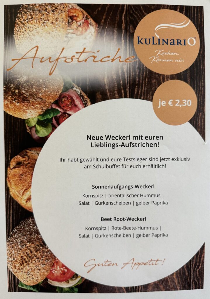 Seit Dienstag, 10.6., gibt es im Buffet die beiden Testsieger der Verkostung (vegetarische Aufstriche)!