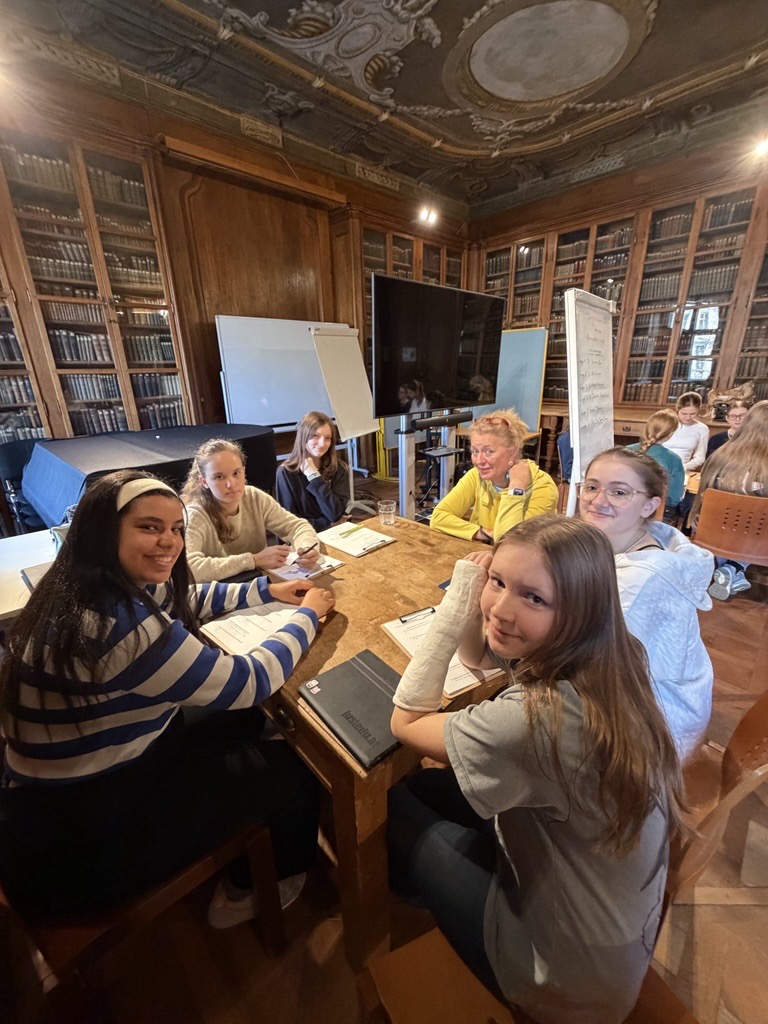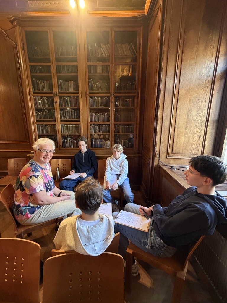 Am 26.2.2026 fanden sich einige Altpiaristner*innen und Obmann Herr Dobrovolny in der Alten Bibliothek zusammen , um von SchülerInnen der 4B interviewt zu werden. Diese Interviews werden anschlileßen auf der Homepage der Altpiaristner*innen zu finden sein und auch im Zuge der 325- Jahre-Schulfeier in den Ablauf der Feierlichkeiten Eingang finden und veröffentlicht werden.