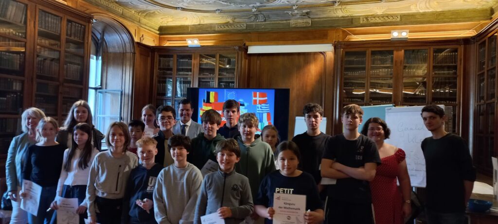 Wie jedes Jahr fand der Känguru-Wettbewerb österreichweit am dritten Donnerstag im März statt. An unserer Schule nahmen alle Schülerinnen und Schüler der 1. und 2. Klassen sowie etliche Freiwillige aus den anderen Schulstufen teil. Mit einem Stück Schokolade, das der Elternverein dankenswerterweise wieder finanzierte, als zusätzliche Motivation arbeiteten sie eifrig an den diesmal wieder sehr kniffligen Denksportaufgaben. Auch wenn keiner eine Topplatzierung erreichte, haben sich doch sehr viele im vorderen Spitzenfeld platziert. Diese großartigen Leistungen wurden von Dir. Krischke bei der Preisverleihung am 13. Mai in der Alten Bibliothek gewürdigt. Wir gratulieren allen Preisträgerinnen und Preisträgern herzlich!