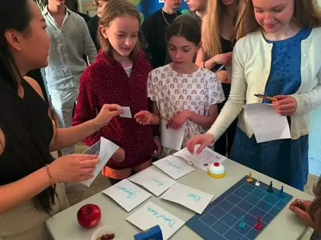 „Koordinatensystem und Streckensymmetrale“ mit der 2bc im Klassenraum der 3b
